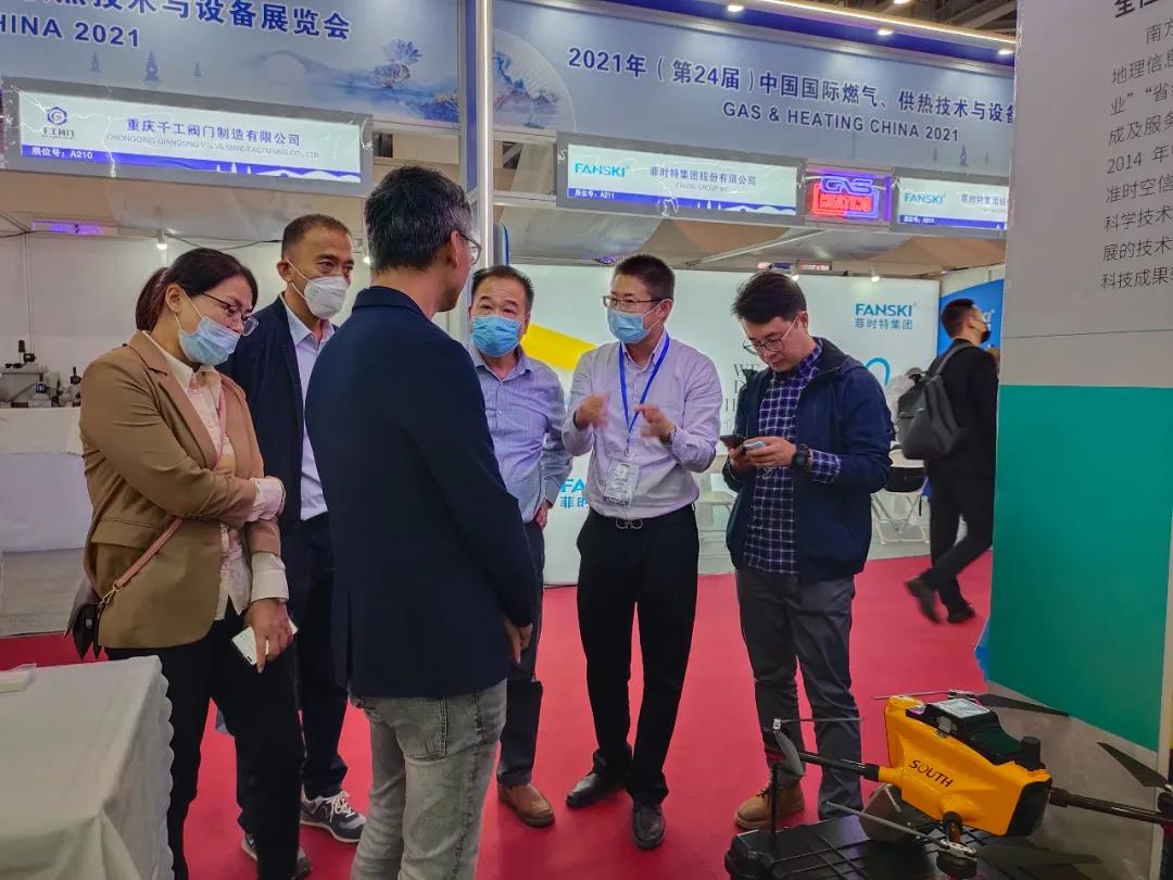 作為燃氣+北斗行業(yè)應(yīng)用的代表廠商,南方攜爆款新品參展,包含極點RTK、SF700A無人機、一體式智能超站儀、雷迪管線儀等多款代表性產(chǎn)品,展出方案包括智慧燃氣平臺、高清二三維地圖、實景三維場站、無人機巡檢、北斗明溝實測、庭院/架空管線采集、防腐層檢測、PE探測等,吸引了眾多同行及客戶前來交流,多家燃氣公司領(lǐng)導(dǎo)也蒞臨南方展位了解最新款產(chǎn)品情況。