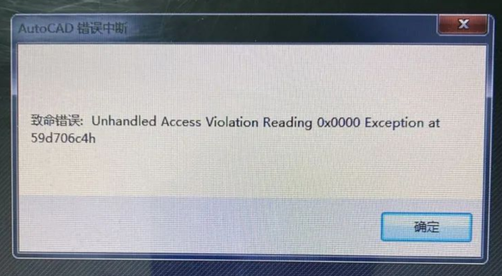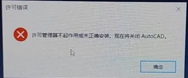 激活許可時(shí),提示下圖錯(cuò)誤,導(dǎo)致CAD關(guān)閉退出,無法使用。