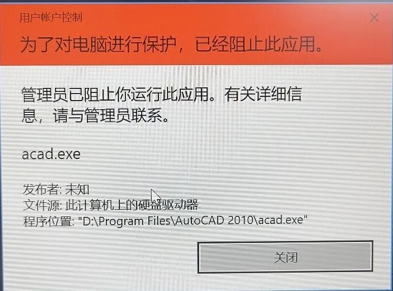 在64位系統(tǒng)中,啟動(dòng)CAD2010就會(huì)出現(xiàn)下圖的錯(cuò)誤提示,無法正常使用。除了升級軟件版本,重裝系統(tǒng),無法解決。