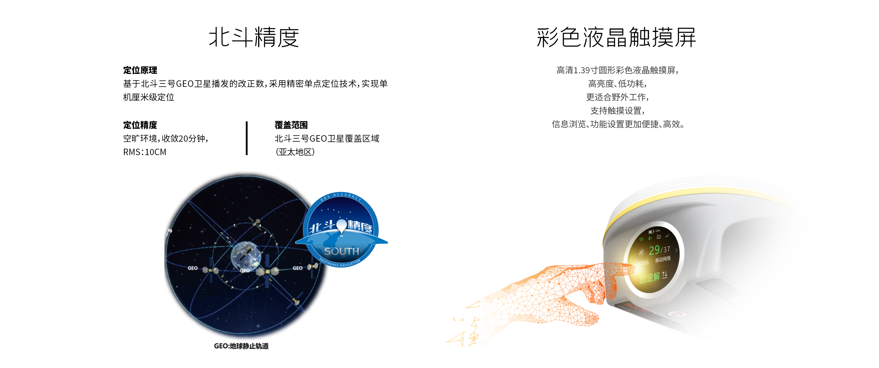 北斗精度 | 定位原理 | 基于北斗三號GEO衛(wèi)星播發(fā)的改正數(shù),采用精密單點(diǎn)定位技術(shù),實(shí)現(xiàn)厘米級定位; |